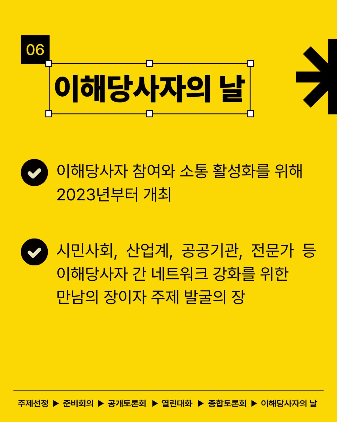 공개토론회 이후 이해당사자 의견을 보다 폭넓게 수렴하기 위해 열린대화를 개최합니다.