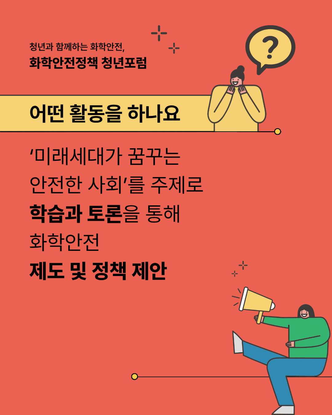 화학안전 정책현안을 미래세대의 시각에서 생각하고 토론하며, 창의적인 아이디어를 제안하는 화학안전정책 청년포럼에 대한 많은 관심과 응원 부탁드립니다!